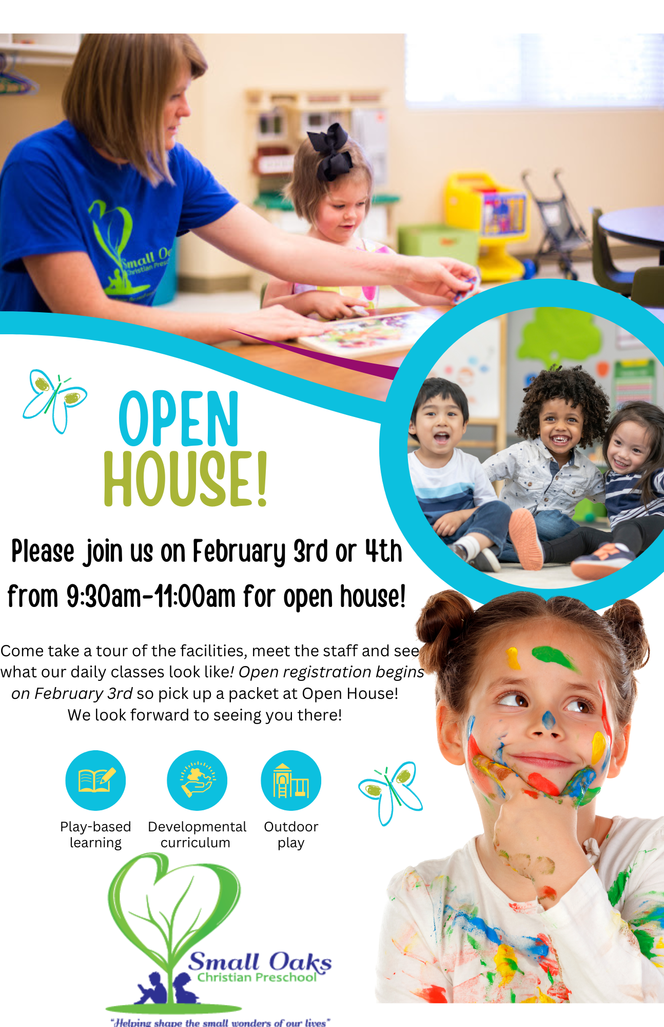 Small Oaks preschool implements a faith based curriculum, which offers a sound biblical base to grow on while socially and acedemically preparing your child for kindergarten.